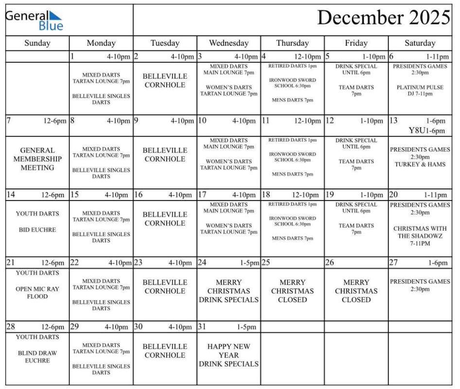 View Larger Image ANAF December By admin|2025-12-01T10:11:56-05:00December 1st, 2025|News|0 Comments Share This Story, Choose Your Platform! FacebookXRedditLinkedInTumblrPinterestVkEmail Related Posts Hastings County would need $23M more a year to end chronic homelessness: CAO Gallery Hastings County would need $23M more a year to end chronic homelessness: CAO Belleville construction values reach $18M year over year in December Gallery Belleville construction values reach $18M year over year in December ANAF Club Calendar Gallery ANAF Club Calendar McDougall Insurance invests $150,000 towards the new YMCA Centre for Life Gallery McDougall Insurance invests $150,000 towards the new YMCA Centre for Life Remembrance day ceremonies across the region Gallery Remembrance day ceremonies across the region Leave A CommentYou must be logged in to post a comment.