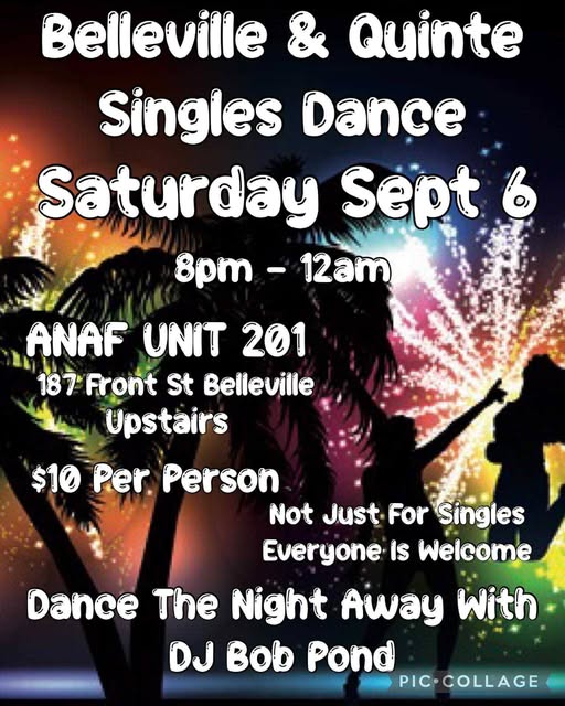 Quinte Singles - ANAF Club 8:00 pm – 11:59 pmSeptember 6, 2025 Army Navy Air Force187 Front StBelleville, ON K8N 2Y9Canada613-968-9116View Location Army Navy Air Force187 Front StBelleville, ON K8N 2Y9Canada613-968-9116View LocationMap Army Navy Air Force iCal Google Calendar View full calendar