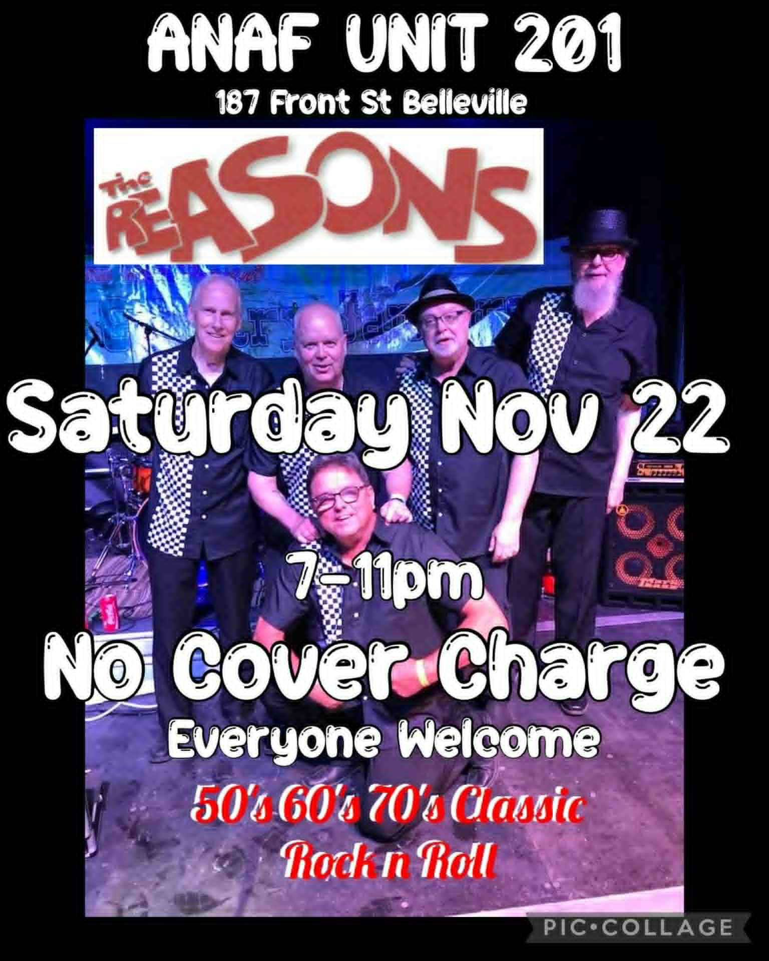 The Reasons 7:00 pm – 11:00 pmNovember 22, 2025 Army Navy Air Force187 Front StBelleville, ON K8N 2Y9Canada613-968-9116View Location Army Navy Air Force187 Front StBelleville, ON K8N 2Y9Canada613-968-9116View LocationMap Army Navy Air Force iCal Google Calendar View full calendar